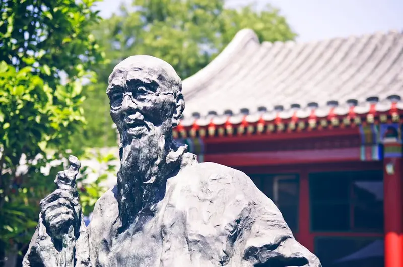 공자의 가르침은 제자들이 기록한 『논어(論語)』에 집약되어 있다. 그는 법률과 형벌보다 도덕적 모범과 교화를 통한 통치를 주장하며, 통치자의 덕이 "바람이 풀을 구부리듯" 백성에게 스며든다고 보았다. 공자는 노나라에서 관직을 지내다 뜻을 펼치지 못하자 여러 나라를 주유(周遊)하며 제자를 가르쳤다.