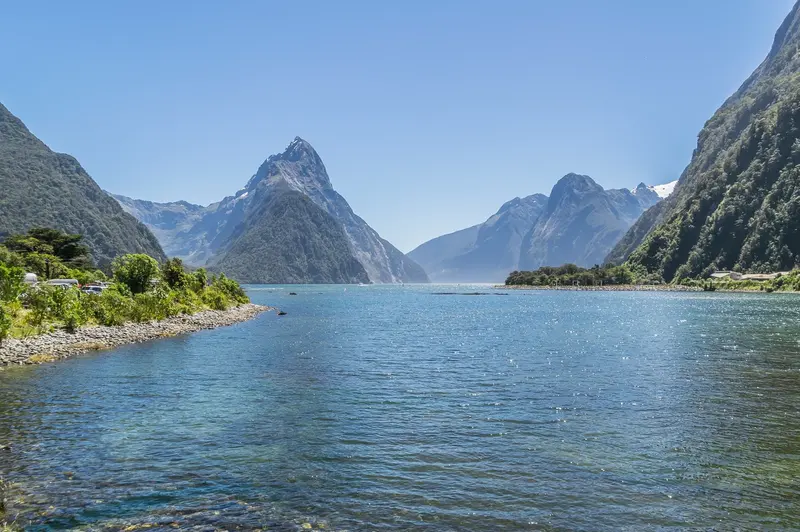 뉴질랜드는 오스트레일리아 남동쪽으로 약 2,000km 떨어진 폴리네시아 최남단에 자리한다.[1] 두 주요 섬은 성격이 뚜렷이 다르다. 북섬에는 화산 고원과 지열 지대가 발달해 있으며, 지열 활동으로 유명한 로토루아가 이 섬에 있다. 남섬에는 서던알프스 산맥이 종단하며, 최고봉 아오라키/마운트 쿡(3,724m)이 솟아 있다. 남섬 남서쪽의 피오르드랜드 국립공원은 유네스코 세계자연유산으로 지정된 밀퍼드 사운드로 유명하다.